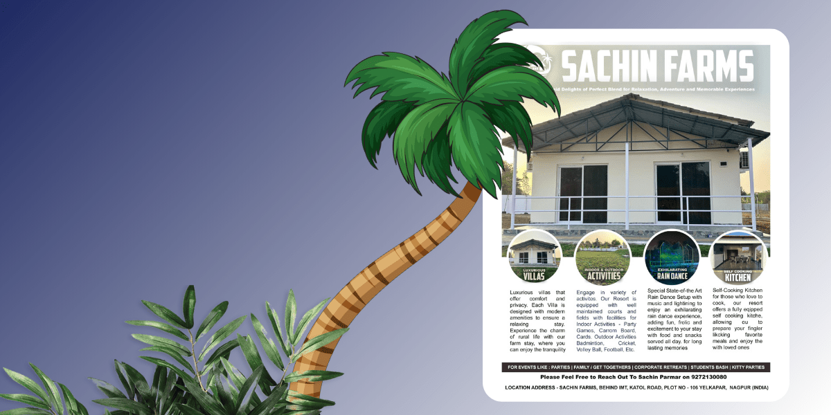 Sachin Farms is a unique and vibrant destination that offers a perfect blend of nature and entertainment. Located in a serene, picturesque environment, our expansive property is designed to cater to a variety of events and experiences. Cottages: Our cozy, well-equipped cottages offer a tranquil stay amidst nature, perfect for families, friends, or couples looking to escape the hustle and bustle of city life. Party Lawn: A vast, lush green lawn ideal for hosting weddings, corporate events, family gatherings, or any special occasion. The open space can accommodate large groups, and is designed to create a festive atmosphere for your celebrations. Rain Dance: For those seeking a lively, fun experience, our dedicated rain dance. Trust This will Cover your poin 1 and 2.